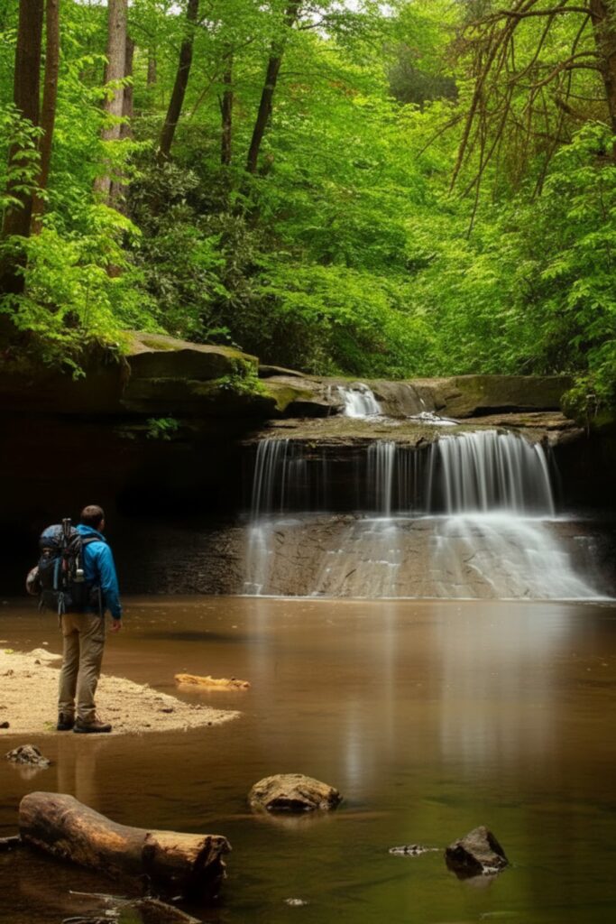 This is one of the few waterfall hikes inside Red River Gorge that you can do. It’s about a mile long hike to a relatively small waterfall, but there is a swimming hole area with a cave next to it, making it a scenic experience. At the same time you can elect to do a different hike that starts from that trailhead to the beautiful Turtle Back Arch. I am also going to put this specific spot as one of my top recommendations to see incredible beaches with waterfalls that are worth checking out.