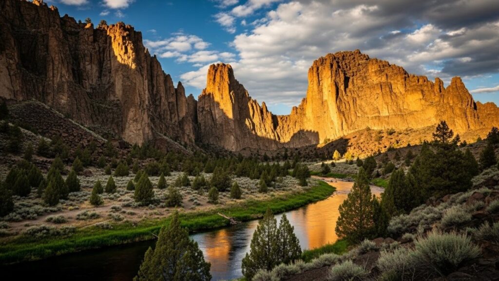 Smith Rock is a world-renowned climbing destination, but you don’t have to be a climber to enjoy it. Hike the Misery Ridge Trail for unbeatable views or wander the River Trail along the Crooked River for easier terrain. The orange-gold cliffs glow beautifully at sunrise and sunset, making it one of the top photography spots near Bend.