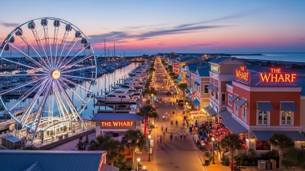 The Wharf is the energetic center of dining, entertainment, and nightlife in Orange Beach. Visitors can ride the iconic Ferris wheel, enjoy live concerts, explore boutique shops, watch the evening laser show, or stroll the marina with ice cream in hand. It’s a lively spot for families, couples, and groups.