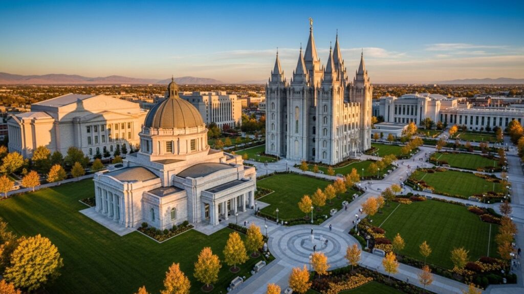 At the heart of downtown lies Temple Square, a 10-acre spiritual and cultural center featuring beautifully manicured gardens, historic buildings, and the world-famous Salt Lake Temple. While the temple itself is closed to the public, the visitor centers offer fascinating insights into the city’s pioneer origins and architecture. During spring and summer, flowers bloom across the grounds, while Christmas transforms the square into a magical light display.